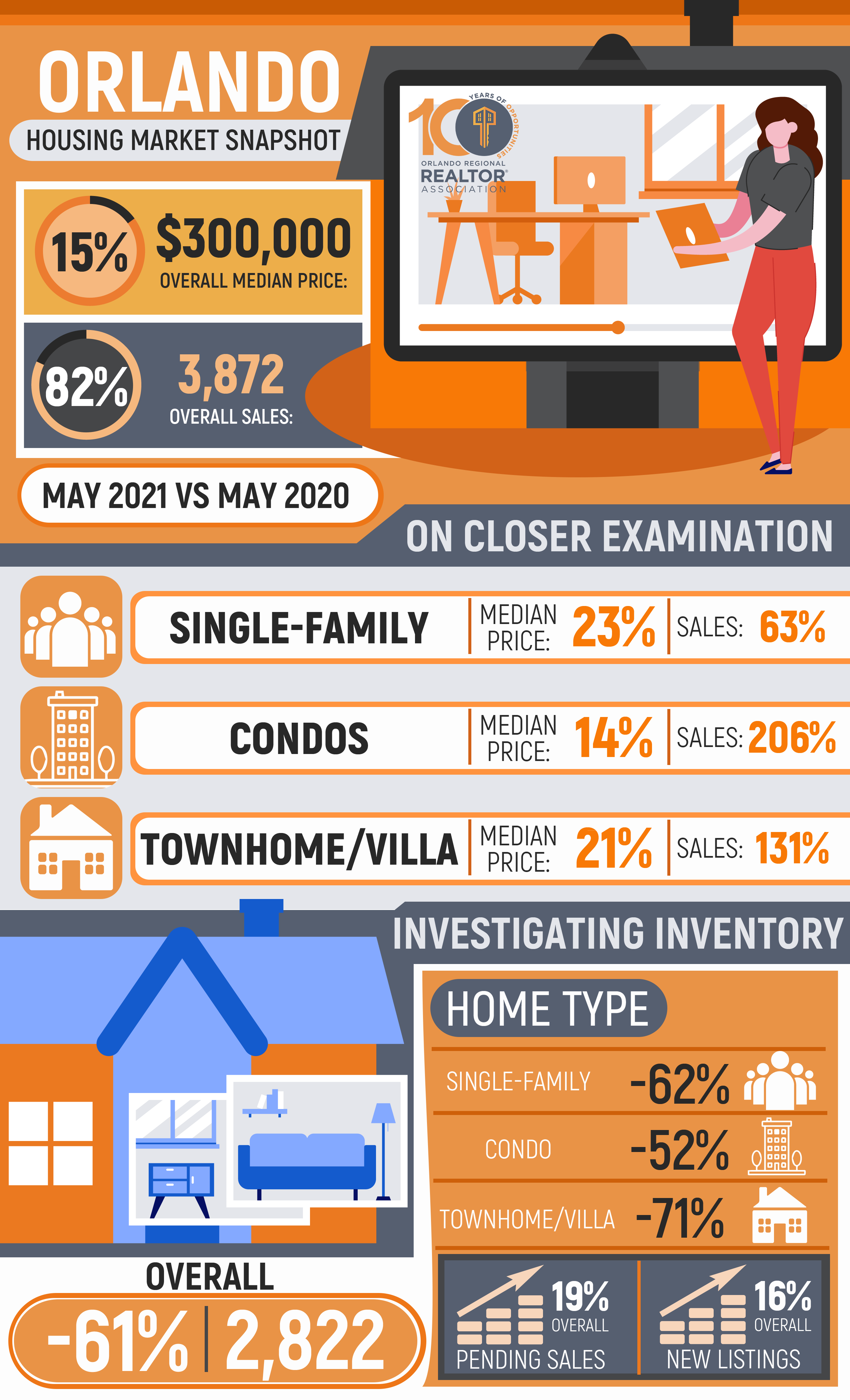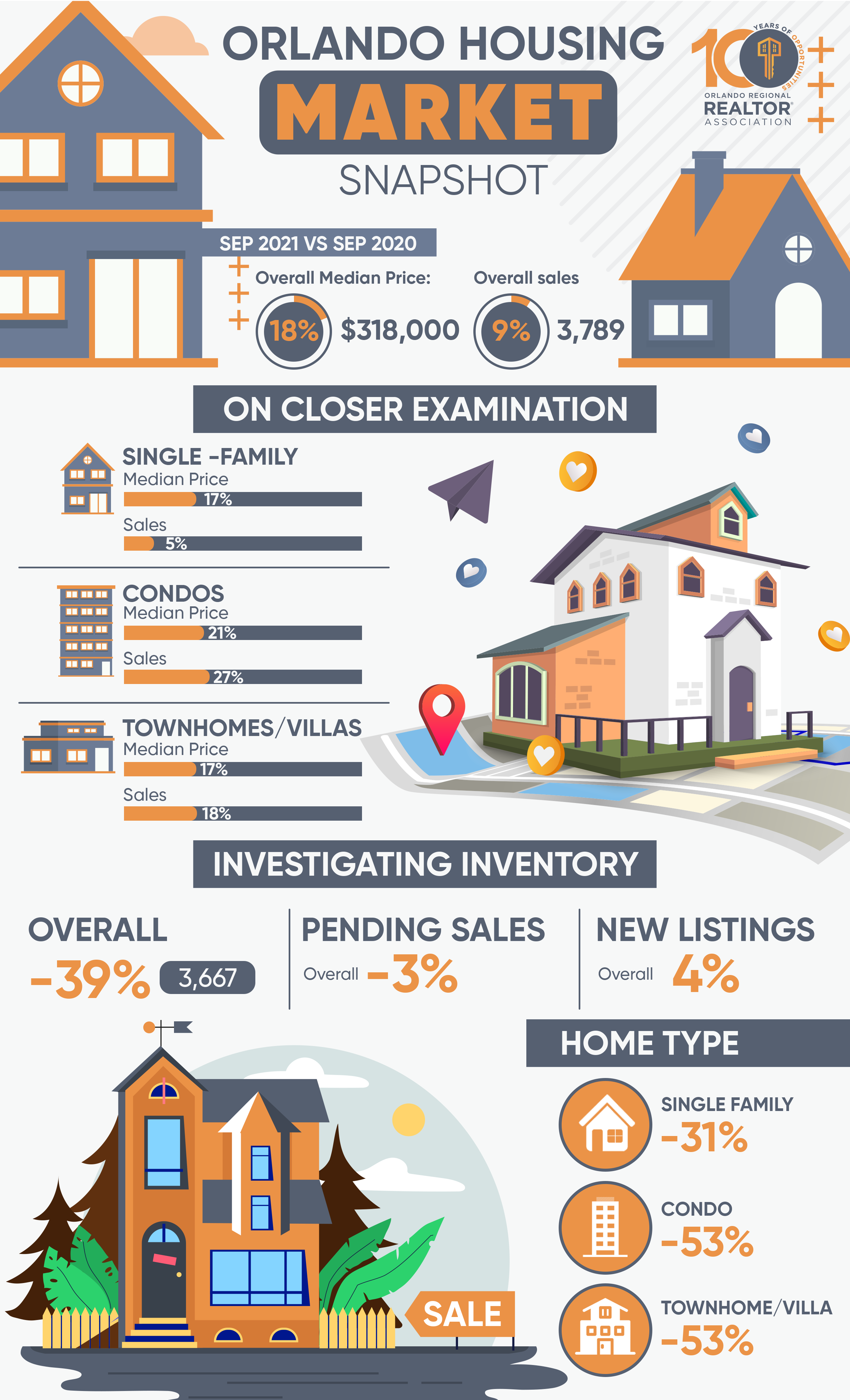 Download this fun illustration of Orlando housing market conditions to liven up your social media, website, and e-mails.
